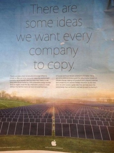 不过,苹果公司这条广告并非关于产品的设计和专利技术,而是关于环保和可再生能源——太阳能。