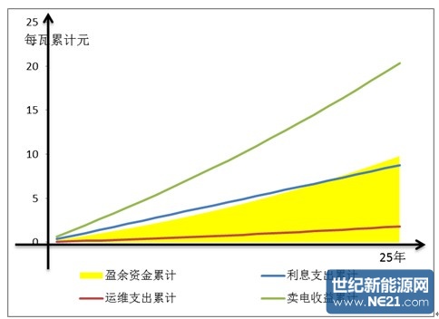 由计算所得,到第25年的累计盈余资金为9.8元/瓦,超过每瓦7元投资的1.4倍。在实际操作中,基金可通过每年的回购提高永久债的价格,降低息率,促使光伏发电成本的进一步下降。由计算所得,光伏发电结合永久债券及主权基金的概念是可以在当前的技术条件下实施平价并网的。