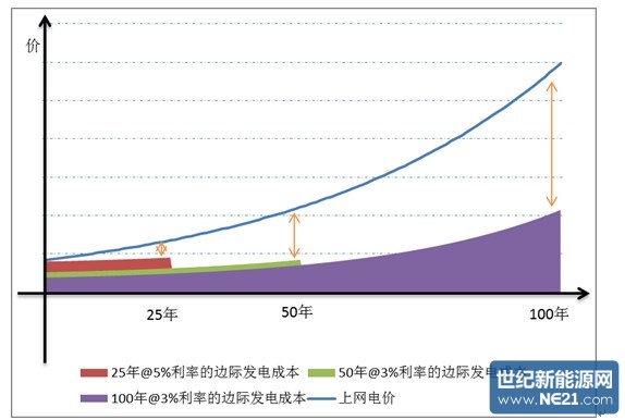 永久债概念下的光伏发电成本实际是固定的利息加上营运成本的年增长。因此,随着标杆电价的上升,光伏发电成本和标杆电价之间的差值越来越大。在财务意义上来说,这为发展储能及补偿长程传输的损失提供了空间和基础,使光伏电力可发展成24小时的不间断能源。
