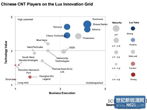 「从2013年到2015年,假设 CNano 与 Timesnano公司依据其扩展计划每年分别增加500吨与100吨,中国在全球产能的占有率也将提高30%至50%」,Ma指出,「包括CNano与 Timesnano两家公司都具有成本优势、完整的客户网路以及持续的资金支援,可望被视为中国的潜在商业合作夥伴。」