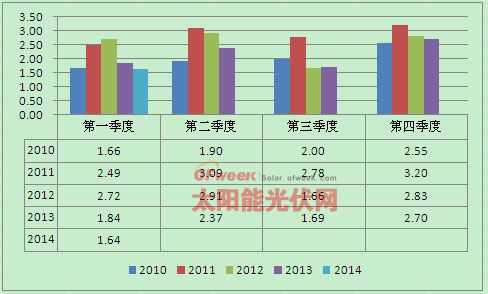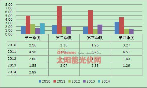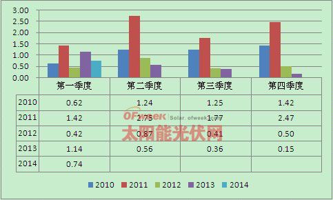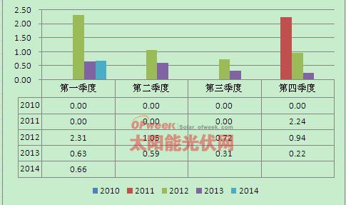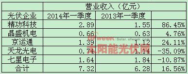 2013-2014第一季度主要光伏设备经营情况(单位:亿元,%)