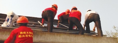 在一阵阵喜气悦耳的爆竹声后,通威分布式光伏发电二期试点如东项目的施工正式开始。据现场安装的工作人员介绍,村民王楚天家的安装规模是10KWp。由于是首户施工,各项工作处于摸索与磨合阶段,但在工作人员的精心准备和努力工作下,经过一天的奋战,到4月13日晚上7点,王楚天家的安装工作圆满结束。