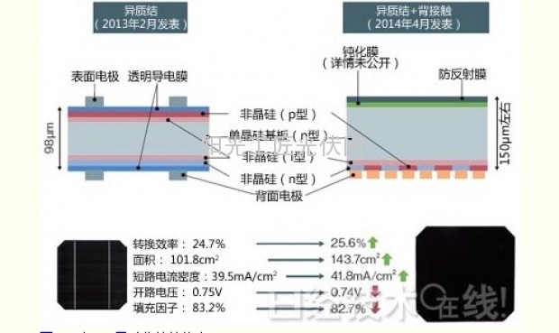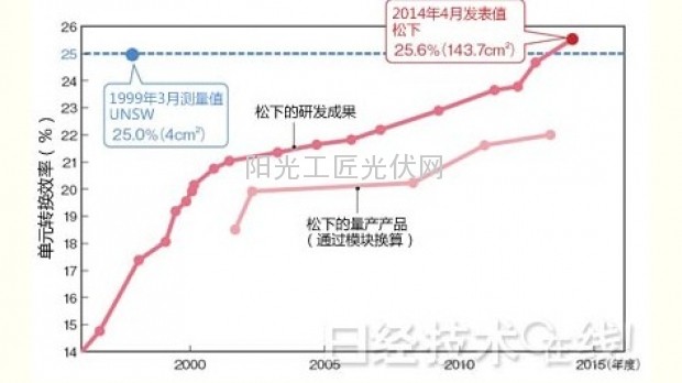 据了解,松下不单单是更新了最高值。UNSW的纪录是在面积仅4cm2的小型单元实现的,而松下是在143.7cm2这一实用尺寸的太阳能电池单元上实现的。