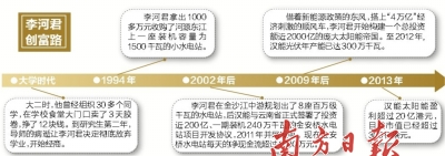 可以获得的公开资料显示,李河君以卖电子产品赚得第一桶金,随后便在河源开发水电站。1994年,李河君拿出1000多万元收购了河源东江上一座装机容量为1500千瓦的小水电站。其随后投资的行业还有光伏、风电产业。目前,李河君在河源的项目有投资210亿的太阳能薄膜组件生产和研发基地,以及两座东江干流上的发电站。