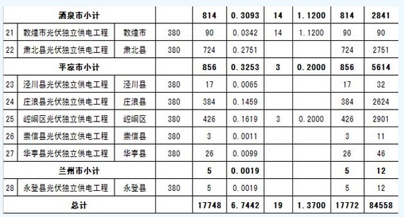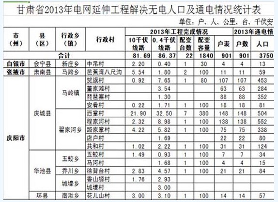 关于甘肃省解决无电人口用电问题电力建设任务落实情况的公告
