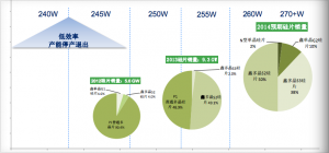2014年保利协鑫计划淘汰上年占比48.9%的普通多晶,上半年保持高性价比的S2,将S3占比从上年的2%提高到38%,并实现10%的G2,安排2%的N型单晶硅片。