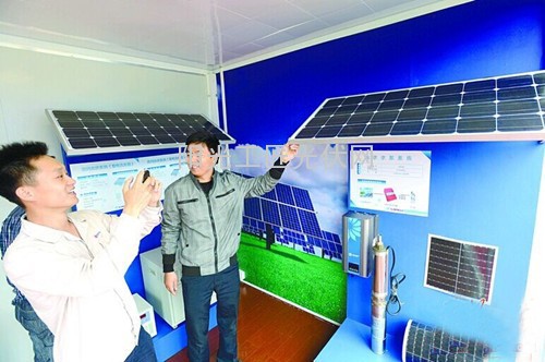 此外,记者在一个“光伏小系统体验馆”看到,一个3KW的小系统里,包括逆变器、控制器和配电箱等器件都已经得到改良,可以直接挂在墙上,发电可同时供空调、电脑、电视和照明等使用。不少市民在现场体验,这或许有望成为以后家庭版发电的趋势。