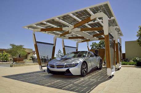 原标题:电动汽车没电了? 来个太阳能车棚试试