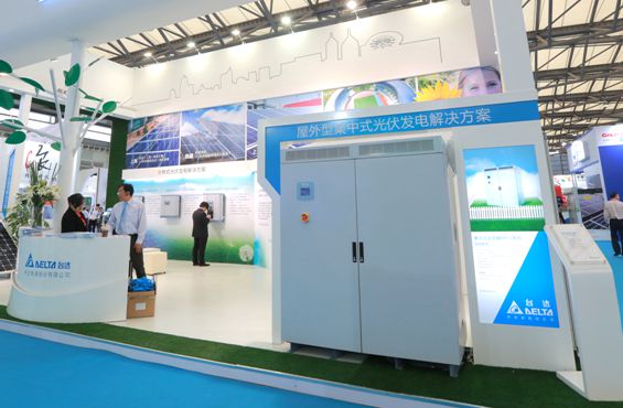 索比光伏网讯:2014年5月20日~22日,全亚洲乃至全球最具影响力的第八届国际太阳能产业及光伏工程展览会在上海新国际博览中心隆重举行。台达以“绿色供电极致能效”为主题盛装亮相展会,全面展示了绿色能源最前沿技术与产品——台达RPIM50A全新组串式光伏并网逆变器、屋外及室内集中式光伏发电解决方案、分布式光伏发电解决方案、分布式光伏屋顶解决方案等专业方案,以及台达凭借不凡的系统整合能力为众多行业用户提供高效能光伏系统解决方案的诸多精彩案例。