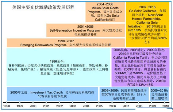 加州光伏发电扶持政策已有10年以上的历史,多个政策组成“加州走向阳光计划”(GSC)对加州光伏市场的发展起到重要作用。