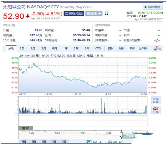 SolarCity于2012年底在纳斯达克上市,股价已经从上市之初的8美元上涨至目前的60美元,同期涨幅甚至超过了特斯拉,目前已经成为美国最大的屋顶光伏电站租赁商和市值第二大的光伏企业,集太阳能发电系统设计、融资、安装和监控服务于一身。