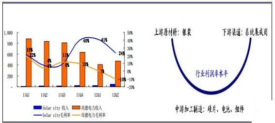 Solarcity的上市和原来光伏的巨头--尚德的退市警告形成了鲜明的对比。这标志着光伏行业已经进入了新时代,行业已经从制造向应用转变,新的商业模式正在酝酿,行业的超额利润将积聚到应用端,新时代的龙头企业将很有可能在这个领域诞生。