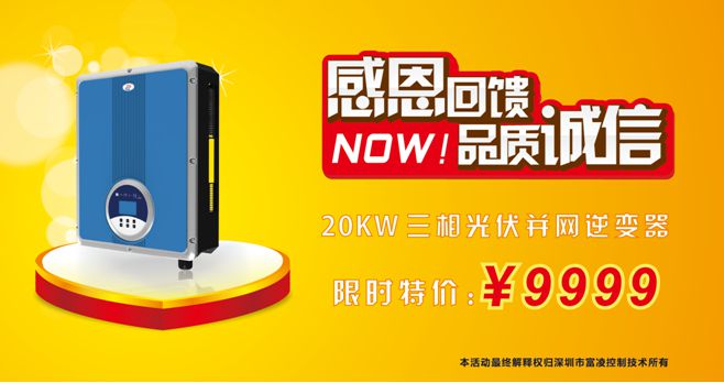 展台上,20KW的中小功率三相光伏逆变器吸引了众多观众驻足观看,据悉,为答谢新老客户,该款产品限时售价仅9999元。其转换效率高达98.0%,采用双路MPPT以提供更宽的工作电压范围,同时提供5年免费质保,最高可延保至20年。