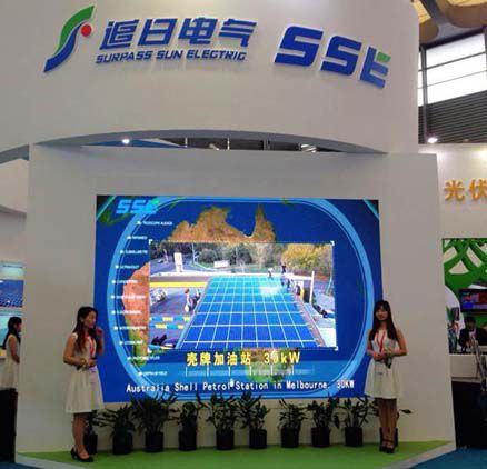 大屏幕LED屏幕前进行讲解,这以成为追日电气历年参加光伏展会的保留节目;为更直观的展示追日电气的电动汽车充电设备,在追日电气的电动车充电设备展示区,不仅有最新的上汽荣威550电动车,而且还有三位车模进行表演,聚焦了大量人气,前来追日电气展台参观和咨询的观众络绎不绝。