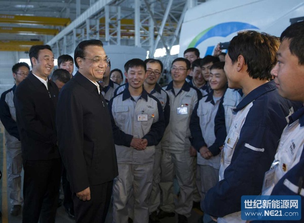 在联合动力(赤峰)公司总装车间,李克强询问关键技术研发、设备制造和产品销售等情况。乔保平详细汇报了国电集团清洁能源发展和风机制造产业有关情况。李克强听后指出,发展清洁能源,是调整能源结构、改善环境质量的重要抓手。要创出自己的核心技术、品牌和标准,更加注重开拓市场,积极参与国际竞争,为绿色发展提供强大动力。