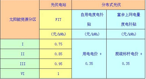 2)对于“自发自用,余电上网”的自发自用部分,不建议采用“一刀切”的度电补贴方式,建议采用“固定收益分区电价”,即根据太阳能资源条件确定分布式光伏固定收益电价,这个电价要明显高于光伏分区上网电价,如: