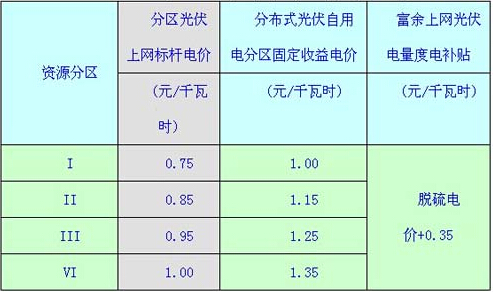 (1)4个分区标杆电价(统购统销模式):0.75、0.85、0.95、1.0元/kWh;
