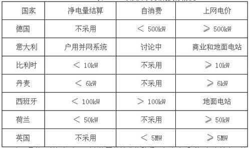 欧洲各国执行“上网电价”、“净电量计量”和“自消费”政策的情况归纳如下: