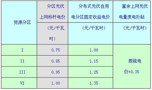 (1)4个分区标杆电价(统购统销模式):0.75、0.85、0.95、1.0元/kWh;