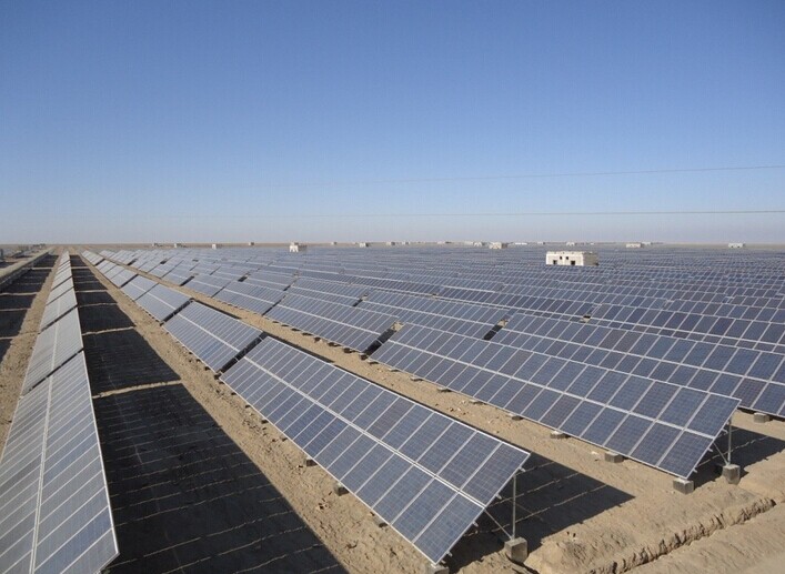 在古浪县腾格里沙漠南缘的马路滩,振发新能源科技有限公司用麦草格固沙,建起了甘肃首座沙漠光伏电站。5月底,记者在此看到,这里的一些太阳能电池板之间的空地上,建起了十余座日光温室。