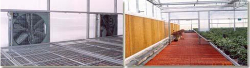 光伏温室系统可选择配置:开窗系统(以达到通风降温的效果)湿帘-风机降温系统(利用水的蒸发降温原理实现降温目的,特制的湿帘能确保水均匀地淋湿整个降温湿帘墙,空气穿透湿帘介质时,与湿润介质表面进行的水气交换空气的显热转化为汽化潜热,实现对空气的加湿与降温)