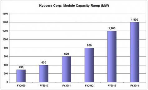 索比光伏网讯:京瓷集团(KyoceraCorporation)表示,其正在瞄准当前财年的年度光伏组件产量达1.4GW,较上一财年约1.2GW提高。