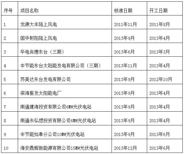 现场检查时发现,部分可再生能源发电企业提前开工,存在违规建设问题(详见下表)。