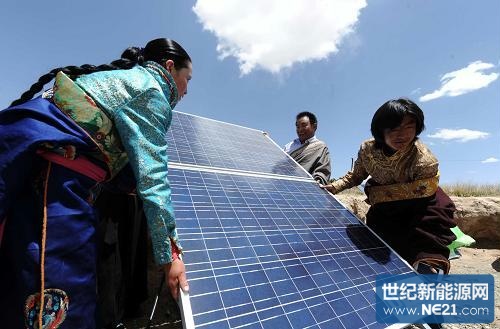 6月17日,在青海省海西蒙古族藏族自治州都兰县果米村,藏族牧民祥杰一家人在调整新安装的太阳能电池板。在柴达木盆地戈壁深处,青海省海西蒙古族藏族自治州的7000多户无电牧民家庭用上户用光伏电源系统,告别过去“黑灯瞎火”的日子。作为青海省海西无电地区电力建设光伏供电工程的投资建设主体,中国三峡集团全资子公司三峡新能源公司将在6月底前为全州无电牧户发放安装7152套340瓦户用光伏发电系统,建设总规模2288千瓦,可解决超过2万人的用电问题。根据国家能源局关于全面解决无电人口用电问题的有关行动计划,2013年至2015年,国家将投资50多亿元,利用电网延伸和独立光伏供电等方式,全面解决青海省47万无电人口的用电问题。