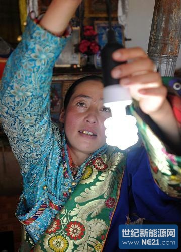 6月17日,在青海省海西蒙古族藏族自治州都兰县果米村,新装的户用光伏电源系统照亮了藏族牧民三措吉的房间。