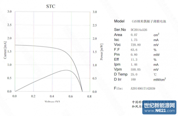 日前,中科院电工所化合物薄膜太阳能电池研究组在普通钠钙玻璃上制备的铁电-半导体耦合光伏器件,经中国科学院太阳光伏发电系统和风力发电系统质量检测中心认证,其转化效率达到11.3%。