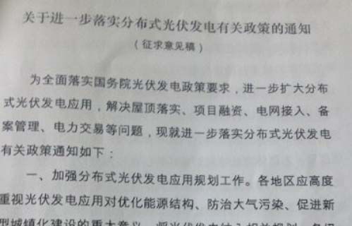 原标题:国家能源局就《关于进一步落实分布式光伏发电有关政策》征求意见