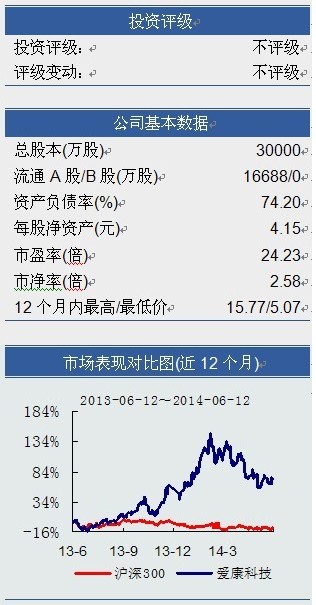 。2.传统业务回暖,分布式光伏项目开拓迅速。爱康科技传统业务为太阳能电池边框、太阳能安装支架、EVA胶膜等多种光伏系统配件,随着2013年以来国内光伏市场的爆发,传统业务盈利能力出现明显的复苏。分布式光伏领域,公司2013年在张家港地区累计建设12.93MW分布式电站项目,并拟增发10亿元用于投资80MW分布式光伏电站项目。公司与中外运长江进行分布式光伏电站项目的合作,具备较强的业务拓展能力。