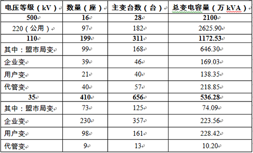 蒙东电网变电站情况统计表