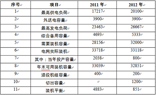 内蒙古电网电力平衡表 单位:MW