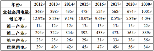 (一)全社会用电量增长预测