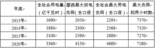 在本报告推荐中负荷方案为研究对象,即到2015年蒙西地区最大负荷为2590万千瓦,2020年蒙西地区最大负荷达到4150万千瓦。