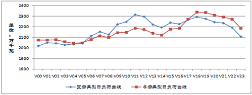 到2015年蒙西电网负荷结构基本没有变化,因此夏、冬季典型日负荷曲线与历年基本相同,典型日负荷率γ、日最小负荷率β见2015年典型日负荷特性表,日负荷特性曲线见下图。2020年负荷结构有一定调整,但日负荷曲线趋势无太大变化。