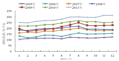 2005-2011年蒙东地区年负荷特性