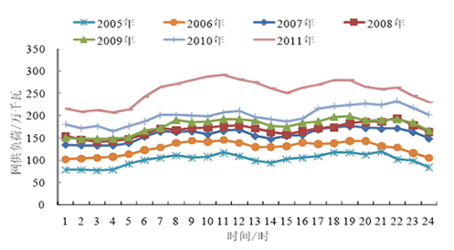 2005-2011年蒙东地区夏季典型日负荷特性