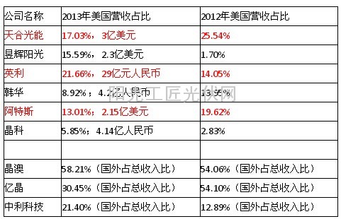 中国大陆进口至美国的光伏产品额: 2011年31亿美元、2012年20亿美元、2013年14.5亿美元。
