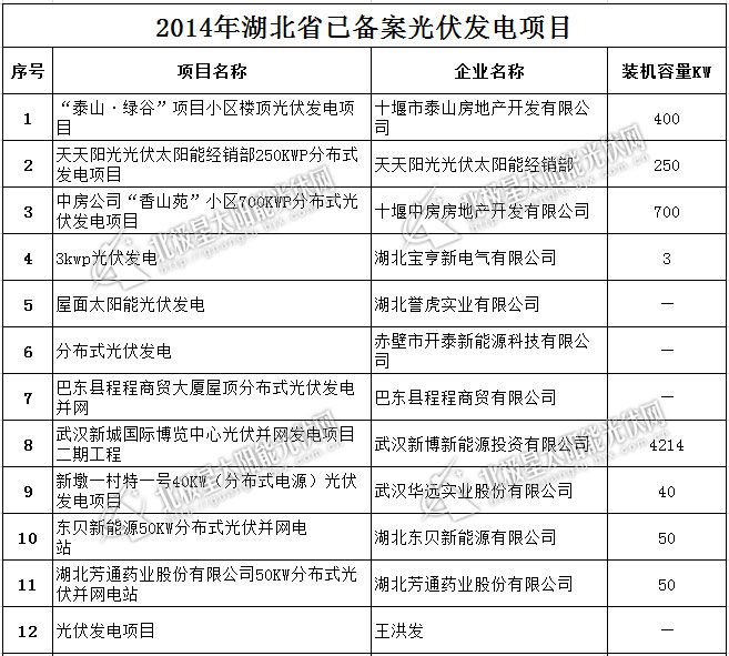 北极星独家:2014年湖北省47个备案光伏发电项目发布