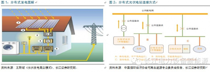 具体到分布式光伏发电,2012年4月国家电网发布的《关于分布式光伏发电并网方面相关意见和规定》中指出,分布式光伏发电是指位于用户附近,所发电能就地利用,以10千伏及以下电压等级接入电网,且单个并网点总装机容量不超过6MW 的光伏发电项目。2014年国家电网出台《关于做好分布式电源并网服务工作的意见》,进一步放大分布式电源的定义范围,将“35KV电压等级接入(或10KV电压等级接入规模大于6MW),但是自发自用比例大于50%的电源项目”同样定义为分布式电源。