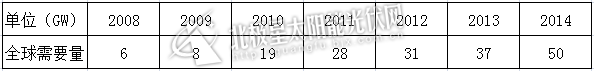 此外,根据相关数据,2014年全球光伏需求量将为50GW。而据NPD Solarbuzz欧洲光伏市场最新季度报告显示,2014年欧洲太阳能光伏需求预计将为10GW,同比下降7%。这将是继2011年达到19.2GW的顶峰后,欧洲市场光伏需求连续第三年下降。