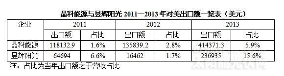 “双反”见闻:2011—2013年对美出口额一览表可以看出,昱辉阳光在过去的三年里对美出口在12年受当时的“双反”调查影响的境况下明显有所收势,但是13年却突然激增,时年也成为出口国家中比重最大的,这一激增也随之冲击了14年的市场营收,而自13年2季度以来昱辉阳光的营收状况可谓惨淡。不过昱辉阳光近期传出向英国光伏项目提供光伏组件,想来这也是避开美国市场之后,拓展欧洲或其他市场的一个信号。