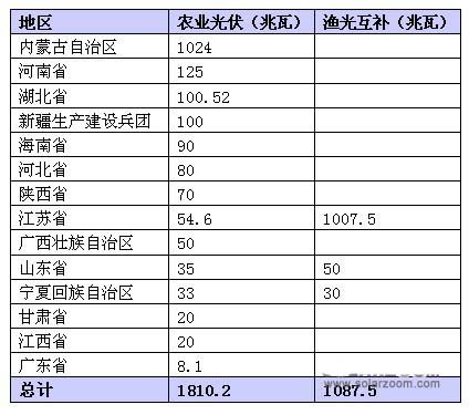 根据小编费心费力的统计,截至2013年底,国家已审批通过的农业光伏项目和渔光互补项目共计2897MW(包含13省和新疆建设兵团,见下表)。其中,农业光伏项目1810MW,渔光互补项目1088MW。