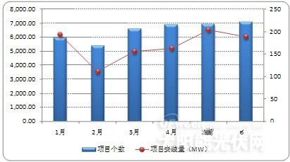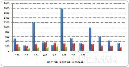 2014年6月份德国新增光伏装机容量为188.6MW,较去年同期相比削减39%,新增安装项目7078个,其中有30个项目装机容量超过1MW。整个上半年来看,德国的安装量在4月份最高,项目个数则是在6月份最高。