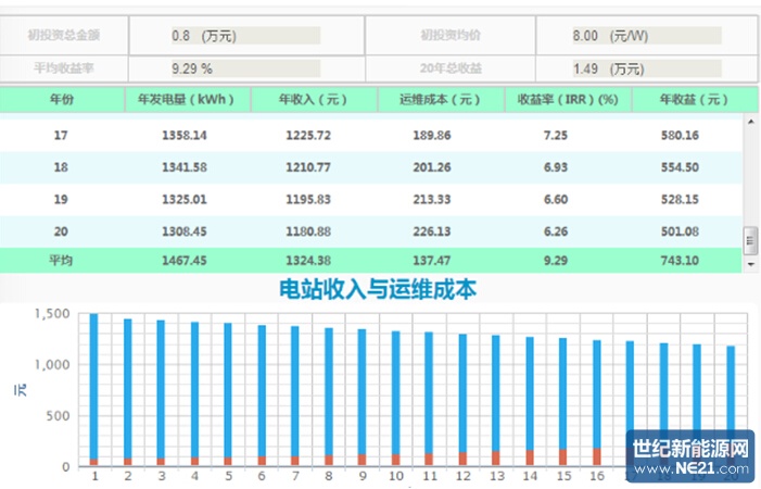 根据上海淘科“光伏宝”计算,以辽宁地区为例每KW装机价格8千元计算,年平均发电量为1467.45度,按50%上网比例,20年平均收益率达9.29%,远远高于银行存款、基金等稳健型投资产品。