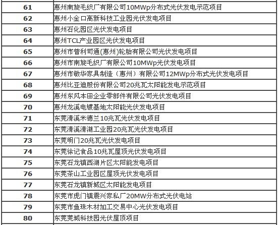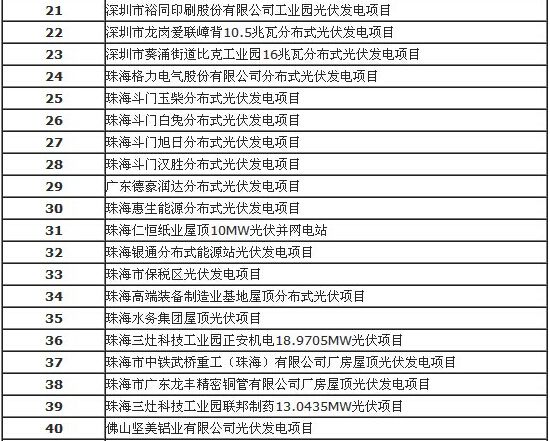 鼓励社会各类主体投资建设分布式光伏发电系统,支持专业化能源服务公司与用户合作,以“合同能源管理”模式投资建设和运营分布式光伏发电设施。充分利用我省经济技术开发区、高新技术开发区、产业转移园区、物流园区等各类产业园区众多,电网接入能力好的有利条件,大力支持具备稳定用电负荷、集中连片屋顶资源丰富、所发电力大部分可自行消化的各类产业园区建设规模化分布式光伏发电系统,各类产业园区新建厂房屋顶原则上同步考虑分布式光伏发电系统的设计和安装,既有厂房屋顶具备条件的分期分批建设分布式光伏发电系统。抓好佛山三水工业园、广州从化明珠工业园、深圳前海深港现代服务业合作区等列入国家分布式光伏发电示范区的项目建设,发挥示范带动作用,在总结经验的基础上推动应用,不断扩大分布式光伏发电应用规模。推动全省建设条件较好的产业园区分布式光伏发电规模化应用,2020年前建成广州萝岗、增城、深圳龙岗等一批50兆瓦以上的分布式光伏发电项目,争取园区内具备条件的企业厂房全部安装使用光伏发电系统,全省产业园区分布式光伏发电规模化应用主要备选项目合计装机容量约200万千瓦(详见附表)。