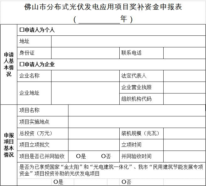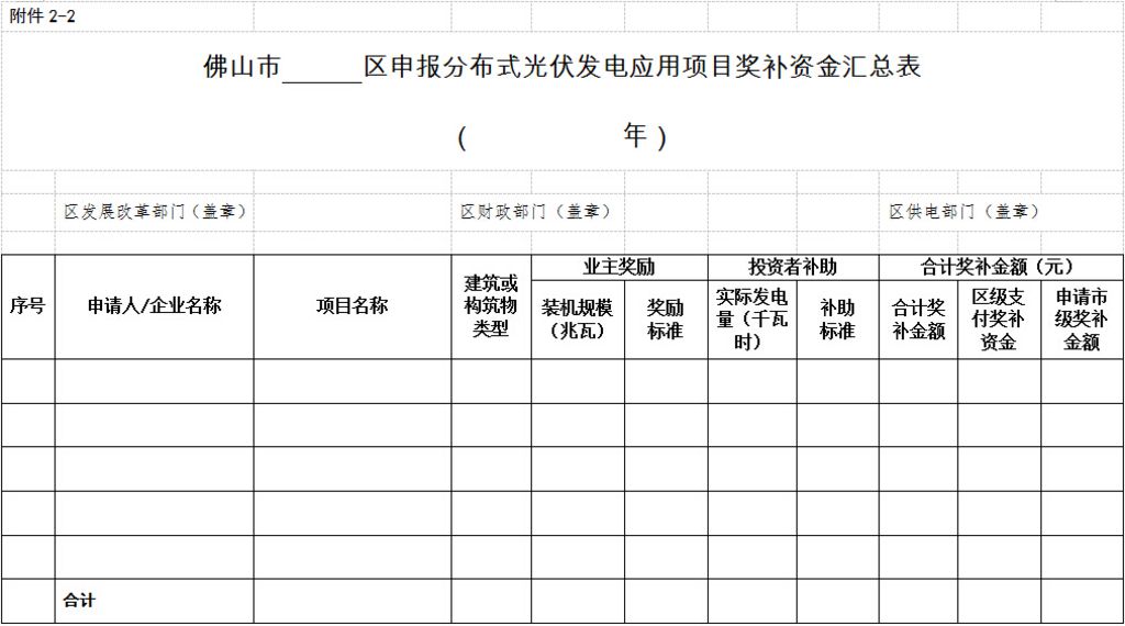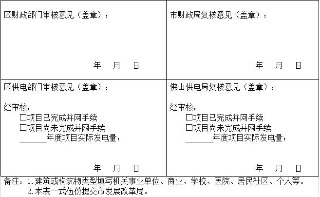 (1)《佛山市分布式光伏发电应用项目奖补资金申报表》(附件1)