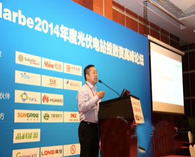 索比光伏网讯:2014年8月21日,阳光电源参加了solarbe主办的2014年光伏电站投资高峰论坛。阳光电源副总裁郑桂标先生在会上做了《光伏电站在技术进步中前行》的主题演讲。